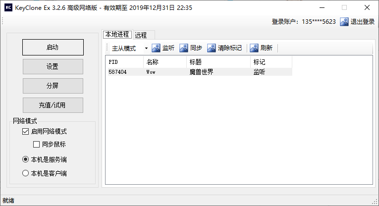 启动KeyClone Ex后,选择网络模式内的启用,并选择本机是服务端选项。